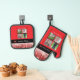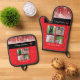 Merry Christmas Family Name Photo Collage Red Oven Mitt & Pot Holder Set