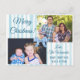 Merry Christmas Family Photo Blue Bow Postcard