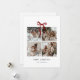 Merry Christmas Family Photo Collage Card | Minimalist Red Bow Holiday Design