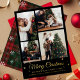 Merry Christmas Family Photo Collage Plaid Gold