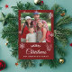 Merry Christmas family photo dark red script Holiday Card