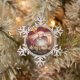 Merry Christmas Family Photo Elegant Gold Script Snowflake Pewter Christmas Ornament