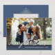 Merry Christmas Family Photo Elegant Modern Blue Card