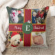 Merry Christmas Family Photo Red Green Monogram Cushion