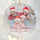 Spread holiday cheer to friends and family with this modern keepsake ornament. The red text reads "Merry Christmas" in stylish retro handwriting script. Replace the sample image with your favourite photo, and add your family name and the year. A white gradient filter helps make the text pop.