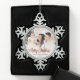 Merry Christmas Family Photo Rose Gold Script Snowflake Pewter Christmas Ornament