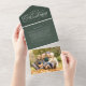 Send one of a kind Christmas greetings with this unique holiday photo card. Featuring an elegant type treatment saying "Merry Christmas" along with a block for custom text, this design also features a detachable section with a single photo. Best of all, this can be folded and sent without an envelope! The stylish hunter green background colour is merry and festive but other colours are available in the collection.