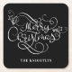 Merry Christmas Fancy Script Name Custom Square Paper Coaster