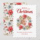 Merry Christmas Farmhouse Poinsettia Wreath Photo Holiday Card
