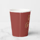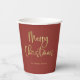 These simple and stylish holiday paper cups say "Merry Christmas" in modern, casual faux gold script typography on a festive red background.