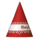 Ideal for your Christmas party fun a red paper hat with an all over tiny white polka dot pattern. Around the bottom of the hat is a faux white lace effect band with a template reading 'Merry Christmas' in green text with a red outline. This text can be used as is or use the template to replace with your own message. To add a little more Christmas cheer there is a small piece of holly with green leaves and bright red berries in the centre of the hat below the text.