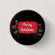 The text "Merry" and "Christmas" are editable if desired on this festive holiday button pin.