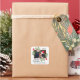 These cute stickers are perfect as envelope seals or gift tags. They feature a cute design with your photo in a frame decorated with hand painted watercolor holly leaves and berries. The caption reads: Merry Christmas with the year and your name.