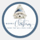 Merry Christmas, Festive Puppy, Blue and White Classic Round Sticker