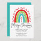 Merry Christmas Festive Rainbow Candy Cane Heart Christmas Cards features a fun and colourful whimsical rainbow around a candy cane and surrounded by pink love hearts. Below is the text Merry Christmas in modern black hand written script. Personalised with your own message and your family name by editing the text in the text box provided. View other items in this collection designed by Evco Holidays https://www.zazzle.com/store/evcoholidays