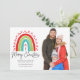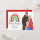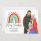 Merry Christmas Festive Rainbow Candy Cane Photo Christmas Cards features a fun and colourful whimsical rainbow around a candy cane and surrounded by pink love hearts. Below is the text Merry Christmas in modern black hand written script. Personalised with your own message and your family name by editing the text in the text box provided. Add your favourite photo. View other items in this collection designed by Evco Holidays https://www.zazzle.com/store/evcoholidays