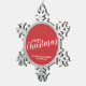 Red and White Modern Holiday Ornament featuring title 'Merry Christmas' in white modern script font style with family name in white modern sans serif font style on red background.