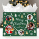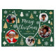 Make your holiday gifts extra special with a custom photo gift bag! This editable template is personalised with five of your favourite photos, and the recipient's name, your family name, or the holiday year. An elegant design with circle-shaped picture frames, set against a patterned background. It features "Merry Christmas" in script typography, with festive tree, snowflake and star motifs — a blend of traditional Christmas elements and modern style, with simple, clean lines and geometric shapes. Perfect for photos of kids, family, friends, and pets! This gift bag is available with a matte or glossy finish. Printed colours: dark green, white and gold.