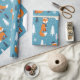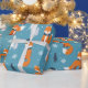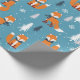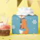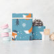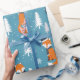 Wrap your holiday gifts with this Christmas wrapping paper featuring cute fox with hat, snowflakes and fir tree on blue background. Your presents will look extra jolly under the Christmas tree.