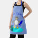 This awesome apron features a cute little grey and white penguin with beady black eyes and yellow beak and feet. The penguin is holding a big blue fish with one flipper and standing on a pale blue lump of ice. There is an open present next to the penguin complete with a festive ribbon.