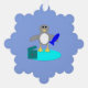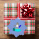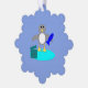 This awesome Christmas ornament card makes a lovely festive decoration that can be hung on the tree or like a conventional Christmas card. It can also be used as a present tag. The design features a cute little grey and white penguin with beady black eyes and yellow beak and feet. The penguin is holding a big blue fish with one flipper and standing on a pale blue lump of ice. There is an open present next to the penguin complete with a festive ribbon. There is custom text on the back so you can personalise it to suit your intended use.