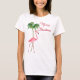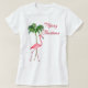 holiday tshirt will keep you in a tropical mood. Gorgeous pink flamingo wearing a Santa Claus hat with a Christmas decorated palm tree.