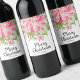 Personalised Christmas wine bottle labels feature a large pink poinsettia, winter flowers, pines and holly leaves your details in chic lettering. MATCHING items in our store.