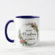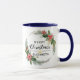 Merry Christmas Floral Wreath and Script Navy Blue Mug
