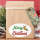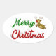 Merry Christmas Flying Reindeer red green script Oval Sticker