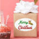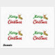 Stickers with Merry Christmas in 3D green and red text and Christmas reindeer. Stickers are available in several shapes.
