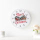 Merry Christmas Flying Santa Sleigh Reindeer Large Clock