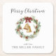Merry Christmas, foliage wreath with golden bells Square Paper Coaster