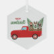 Merry Christmas French Bulldogs Red Pickup Truck Glass Tree Decoration