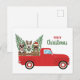 Merry Christmas French Bulldogs Red Pickup Truck Holiday Postcard