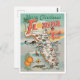 Merry Christmas from Florida greeting on vintage Florida tourism map of attractions for a fun retro Christmas card.