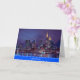 Merry Christmas from Frankfurt Germany, scenic nighttime photograph, blue and white Christmas banner.