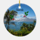 Merry Christmas from Guatemala, scenic landscape photograph of volcano and lake, round Christmas ornament.