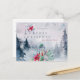 Beautiful moving announcement postcard to let everyone know you've moved for this holiday season. Watercolor misty winter forest design with elegant lettering, rustic lantern, woodland wildlife, christmas foliage and poinsettia flowers. Wishing you a Merry Christmas from our new home can be edited for a single person or a family and you can also add your personalised message and new address on the back.