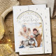 Merry Christmas from our New Home photo holiday moving announcement card. The design features handwritten script calligraphy and a doodle sketched pattern of scandinavian christmas trees in natural gold and grey. Photo template is ready for you to add your picture, which is displayed in square format and you can edit the wording to make it suitable for singles, couples and families. This photo Christmas Card from your new house is an elegant 2-in-1 choice to say happy holidays and let everyone know your new address at the same time.