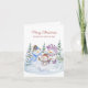 Christmas card from your new home. The wording reads "Merry Christmas from our new home" and you can add your personalised christmas greeting and new address on the inside. This watercolor design features 3 cute snowmen with a backdrop of christmas trees.