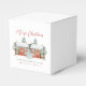 This sweet holiday favour box features "Merry Christmas" in pretty red calligraphy script, personalised name and year, and festive winter home illustrations with snowy pine trees and garland. Wish your neighbours and friends a Merry Christmas with this thoughtful holiday design! Shop this store for coordinating gift items.