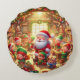 A round throw pillow with Santa and his helpful elves in the workshop making toys for everyone on the 'Nice List'. This pillow is for your bed, sofa, or office, to be kept for yourself or given as a gift to someone you love.