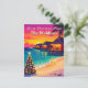 Send warm Christmas wishes from paradise! This postcard features a glowing tropical sunset, overwater bungalows, and a festive beach Christmas tree — the perfect tropical twist on the holidays.
