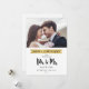 Newlyweds! send out this elegant photo Christmas card to family and friends as the new Mr. and Mrs. The design features beautiful hand-lettered brush font style typography with a faux gold foil ribbon banner underneath the words "Merry Christmas". On the front side, the design also allows space for one photo. On the backside of the card, the design features space for holiday greetings. Personalise the design by replacing the sample photo and text.