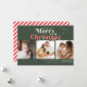 Merry Christmas Fun Candy Cane 3 Photo Red & Green Holiday Card
