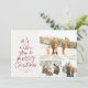 Merry Christmas fun red three photo family Holiday Card