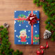 Merry Christmas with the reindeers, the elves, and of course, the snowman. With a blue background, filled with snow, this decorative wrapping paper is perfect for all your Christmas gifts.