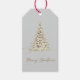 "Make your holiday gifts shine with sophistication using this elegant Christmas gift tag featuring a stunning gold Christmas tree set against a soft grey background. Finished with graceful gold foil-style "Merry Christmas" script, this design brings understated luxury and timeless charm to your seasonal gift wrapping. Perfect for those who love modern elegance with a festive sparkle, this tag complements neutral, gold, or metallic-themed gift wrap beautifully — ideal for personal, professional, or upscale holiday gifting."
