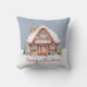 Watercolor Christmas gingerbread man and house with candy canes and Merry Christmas text in snowflakes.