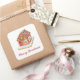 Our sweet and colourful Christmas Gingerbread House square sticker label features watercolor illustration of a freshly baked Gingerbread house decorated in white frosting, with colourful candy and gumdrop accents. Text states "Merry Christmas". All text can be updated with your own custom name and details. Spread holiday cheer with this modern and cute Christmas cookie sticker!